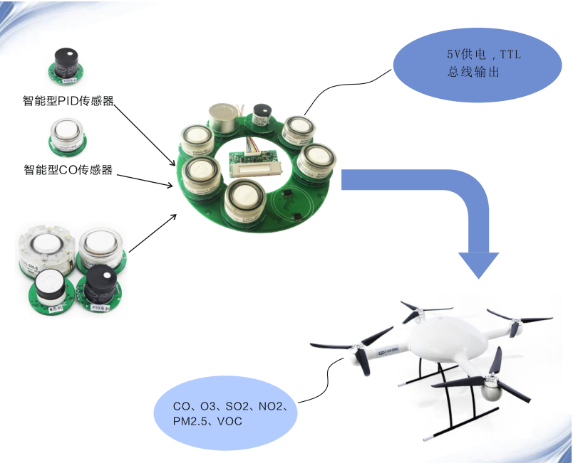 但是由于無人機(jī)的載荷有限,要完成高精度的大氣環(huán)境監(jiān)測工作需要高精度的傳感器,而傳統(tǒng)傳感器往往在體積、重量等方面的限制可供選擇的不多。因此,需要研究開發(fā)適合無人機(jī)搭載的小型,輕型傳感器,實(shí)現(xiàn)無人機(jī)預(yù)警監(jiān)測。