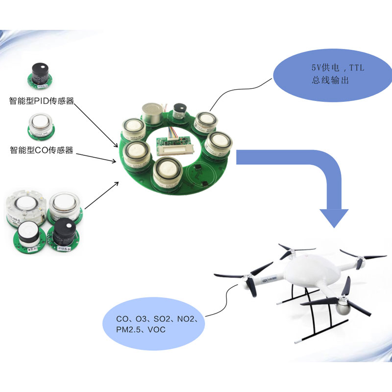 無人機(jī)載智能傳感器在監(jiān)測大氣環(huán)境作業(yè)中效率高、機(jī)動(dòng)靈活、使用方便、續(xù)航時(shí)間長、受環(huán)境影響小和精度高等優(yōu)點(diǎn),可以承擔(dān)高風(fēng)險(xiǎn)的飛行任務(wù),為大氣環(huán)境監(jiān)測提供了一種新的選擇。