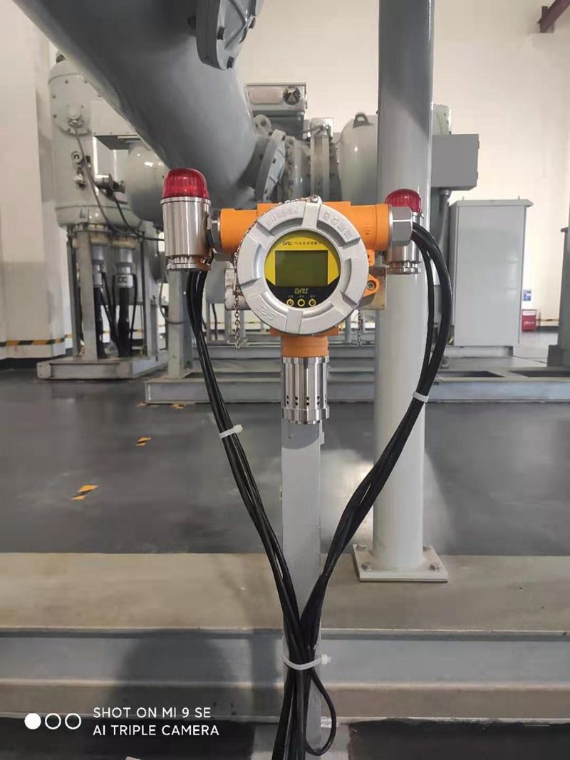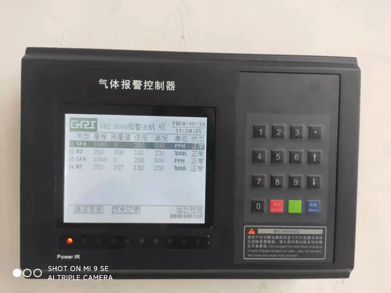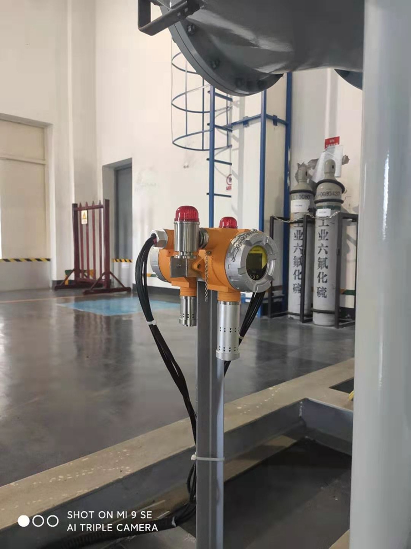 Function: Real time online monitoring of sulfur hexafluoride gas leakage and monitoring of oxygen concentration. The gas online detector outputs two relays, and upon detecting a leak, an audible and visual alarm is triggered, and the output signal is linked to the fan. Ensure personal safety.